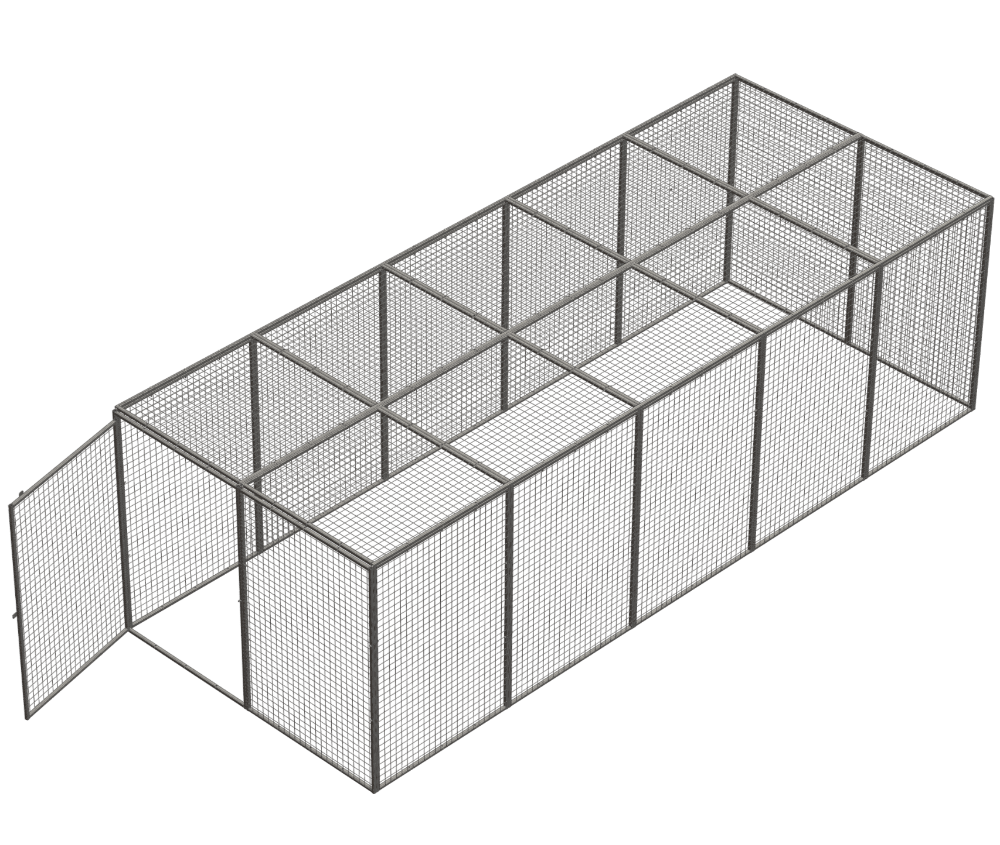 Gorilla Gas Cage, 2350 x 6000 x 1800, modular bolt-together design, using 25 mm box sections and 3 mm wire mesh. Galvanised unit is supplied complete with all fixings, for fast assembly on-site.