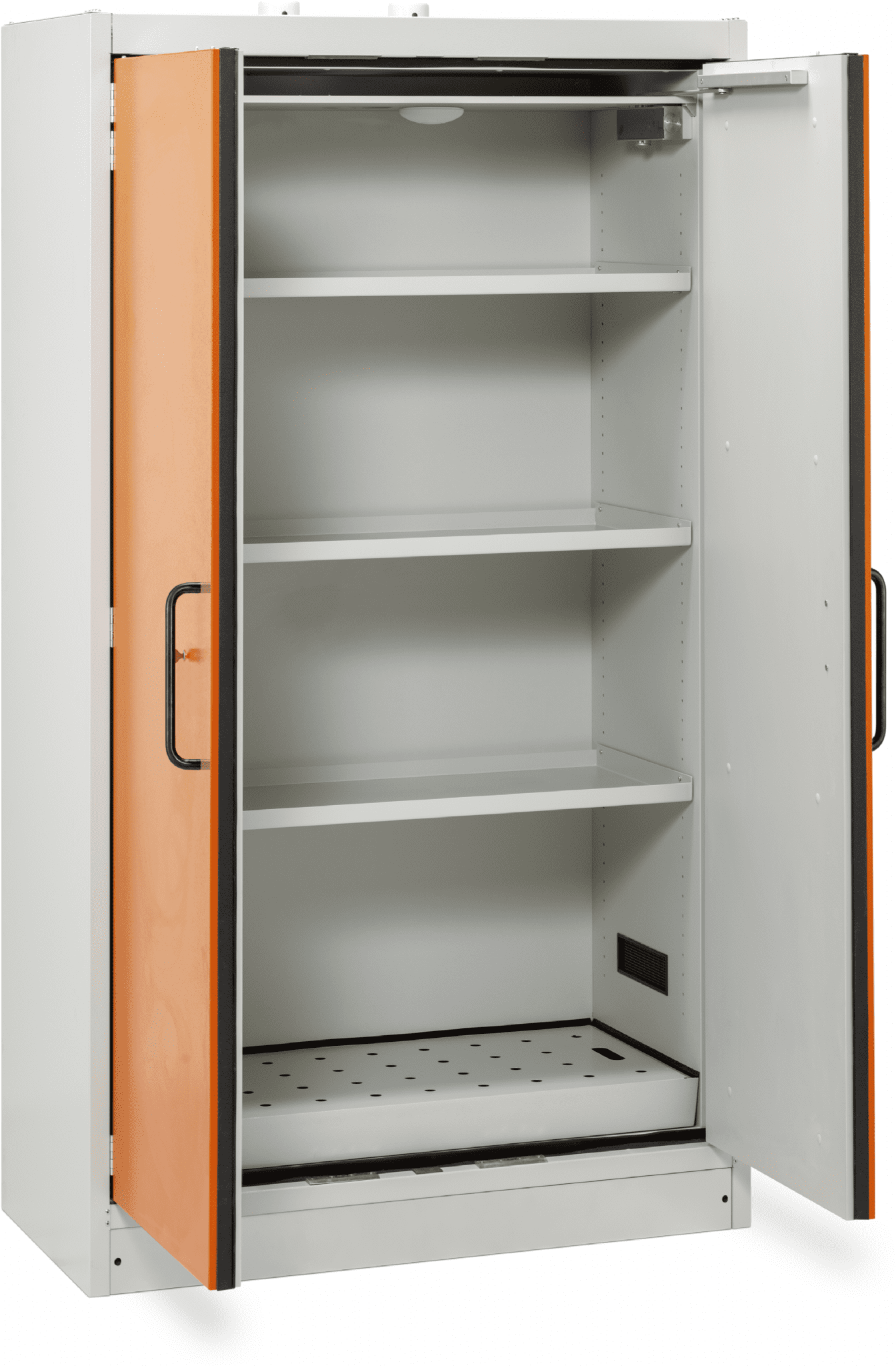 Fireproof secure cabinet, designed for safe storage of low capacity lithium batteries with 90 minutes fire resistance. Risk of fire spreading and accelerating is significantly reduced with this fireproof cabinet. Complies with latest version of DIN EN 14470-1